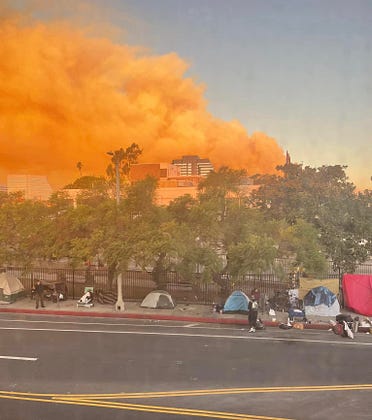 Yes, those are tents and people living in them in my solidly middle class, which in L.A. means outrageously expensive, neighborhood. I have words on that too, but will wait on them for another time. Meanwhile I handed all of the homeless folks in this photo KN95 masks this morning because the air is deadly and we really are all in this together.