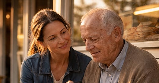 She was six years old. Summer. A yellow dress with tiny white flowers. Her hand tucked inside her father’s large hand. They were coming down that same corner, only then everything had seemed huge to her. The sidewalks wider, the people taller, her father almost unbeatable. He smelled of soap, sweat from work, and cigarettes. And he, in a voice that back then meant safety without her knowing it, had turned and said to her: