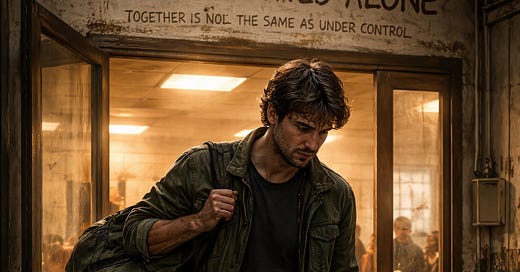 Something pricked me then. Not enough to make me speak. Just enough for me to feel the first discomfort. The man looked dead from exhaustion, and around him five relatively rested people were explaining that the problem was his energetic non-participation.