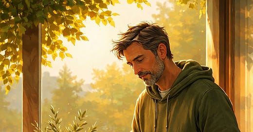For a few seconds he stayed lying there, staring at the ceiling. The room was still half-dark. A dull gray light was slipping in through the crack in the curtain. Beside him, Anna was asleep on her side, one hand tucked under the pillow, like a child who never fully trusts sleep. Stefanos turned his head a little toward the nightstand. His phone read 5:47.