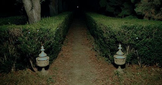 And once the iron gates open and the baroque urns, the hedges, and that mysterious light come into view, it slips into a dream-state without losing its footing. The centaur entrance is especially good. “Well, my eyes are truly stuffed with wonder now, Ray” has exactly the right tone, startled, sharp, a little funny, and still full of awe. It feels theatrical, eerie, and confident in its own oddness.