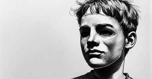 What makes it powerful is the restraint. You don’t turn him into a symbol. You let him stay a man with armour, a mask, and that boy… still there, quietly trembling underneath. That choice gives the piece tenderness and dignity. It feels careful, humane, and deeply attentive to what people carry when the world gives them nowhere gentle to put it.