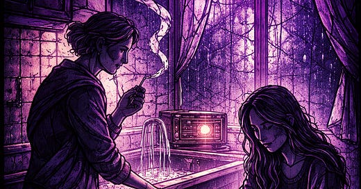 The daughter lowered her eyes. Outside, the rain grew stronger, enough now to be heard on the tin roof over the little yard. “People listen in order to remember they’re alive. Songs are tears, mama. And dreams that never found a home. People let sorrow into the living room because when their own stays voiceless, it chokes them.”