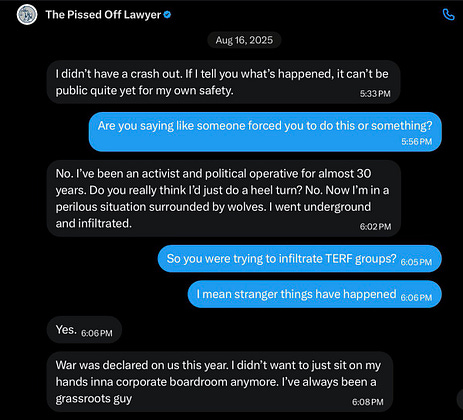 Hilarious. They declared war on us with “Die Cis Scum” and "#fuckcispeople and flat out assaulting Germaine Greer and Lierre Keith — we TERFs infiltrated them a long time ago.