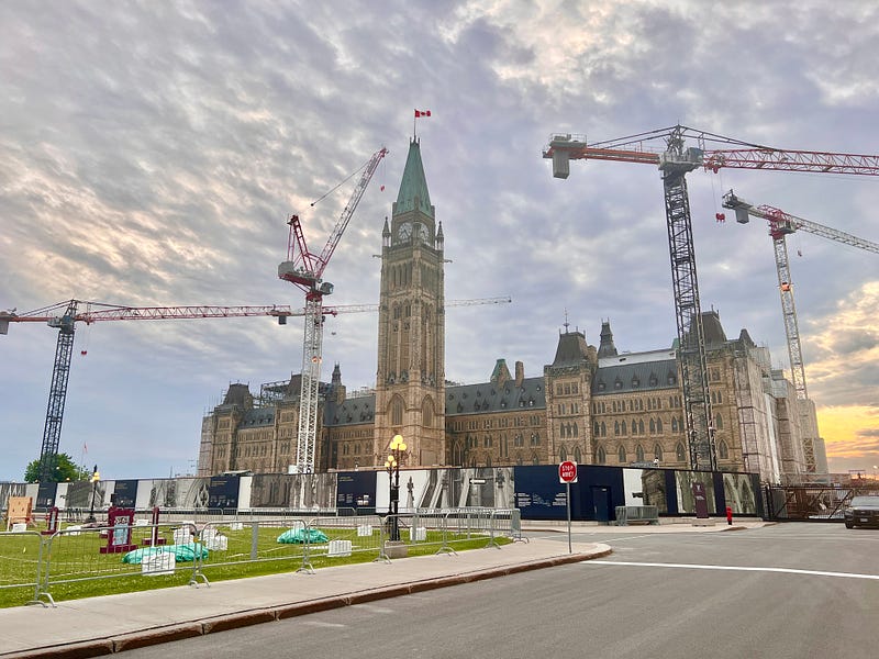 There’s a heck of a lot of development happening in Ottawa which is transforming the historic precinct around the marvelous Parliament buildings. The Centre Block is undergoing a decade plus renovation, hence the sight of cranes, and a giant crater under the peace tower.