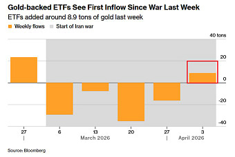 For the first time since the Iran conflict started, gold ETFs took in ~9Â tonnes of metal last week.