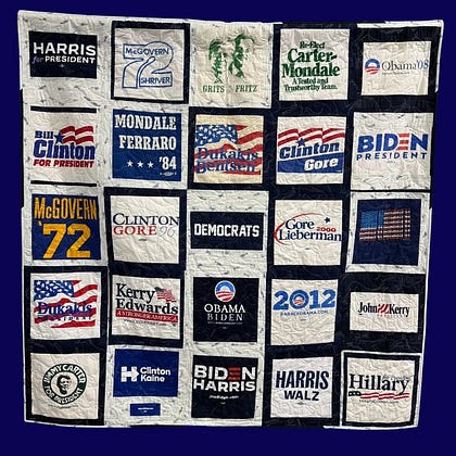 Want to own a piece of Democratic political history? A Democratic political t-shirt quilt has been made by two quilters who have donated their time and talent to produce a one-of-a-kind political keepsake.