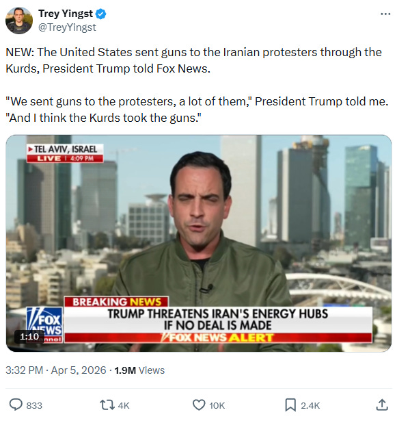 According to a Fox News reporter, Trump administration sent a lot of guns to protestors in Iran earlier this year, but they believe the Kurds kept them