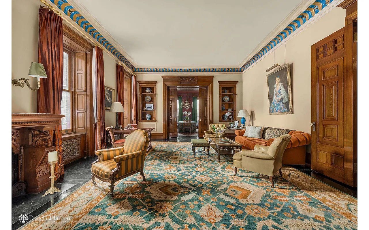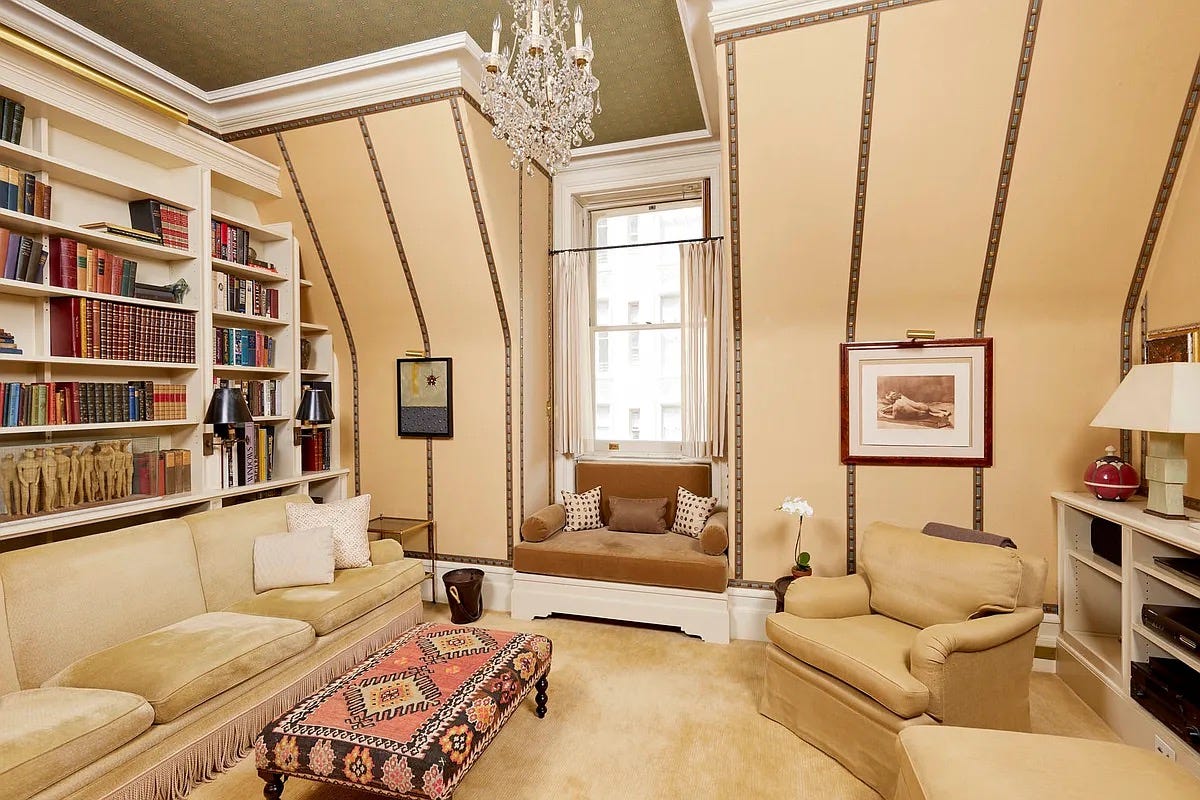 Some of my favorite rooms in The Dakota, the UWS apartment building where Yoko Ono lived. These units were built to buyer specs and redesigned many times as owners changed hands, even combining units into huge, wandering mega-apartments.