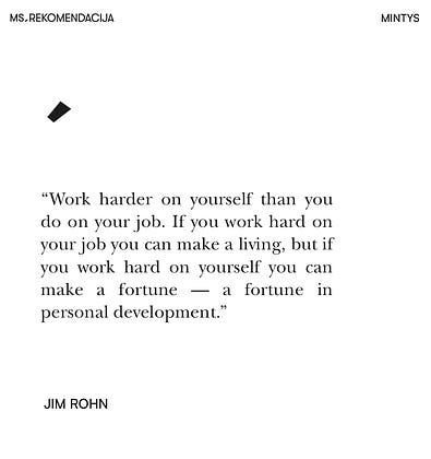 Dažnai sakome, kad mylimas darbas mus augina. Ir tai tiesa — jis įtraukia, lavina, suteikia patirties.Tačiau, amerikiečių verslininkas, rašytojas ir lektorius Jim Rohn akcentuoja "darbą su savimi".