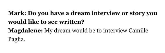 Camille Paglia if you’re reading this my DMs are open and I check my emails incessantly
