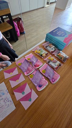 She handpicked each of her friends with so much thought. She packed the goody bags one by one, drew little treasures just for them, and picked out prizes based on what they love. Not what’s trendy or cool, but what would make them smile. She wrote them handwritten notes.