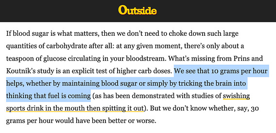 I was reading Alex Hutchinson’s newsletter yesterday, covering recent research on carb intake during exercise, among other things (see here: outsideonline.com/healt…)