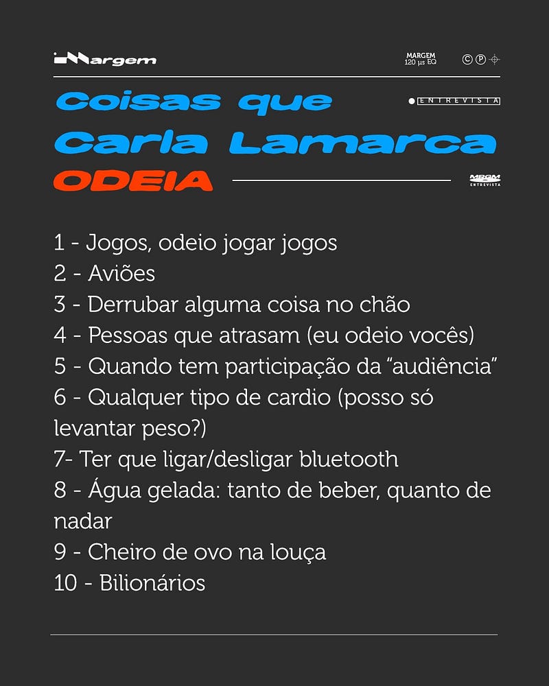 a Carla Lamarca passou pela nossa seção 10 Coisas que Amo / Odeio