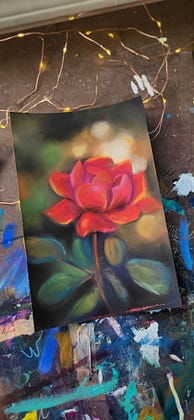 Today after many years, I made a pan pastel painting! I really love the softness and the mediums matte but glowy feel! I didn't research how exactly to varnish it and unfortunately, after spraying with a fixative it became very dull. That's ok, either way it was fun and nice to try something new!🌹