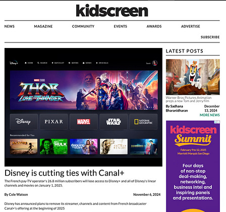 → From January 2025, no 1st Pay TV window of Disney movies, Disney channels and Disney+ will be available to the 9.8M of C+ subscribers (2023).