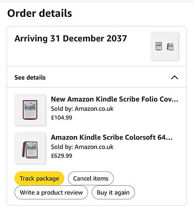 Just thought Iād check how my Kindle Scribe Colorsoft order is going.