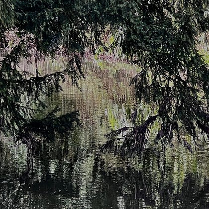 2026.03.15 - wandering discoveries - the start of the mill stream, through the yew branch curtain.
