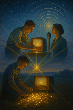 Television was born from a mix of all three: Farnsworth’s sketches in the dirt, Sarnoff’s empire-building drive, and countless unseen hands bringing the glow to life.