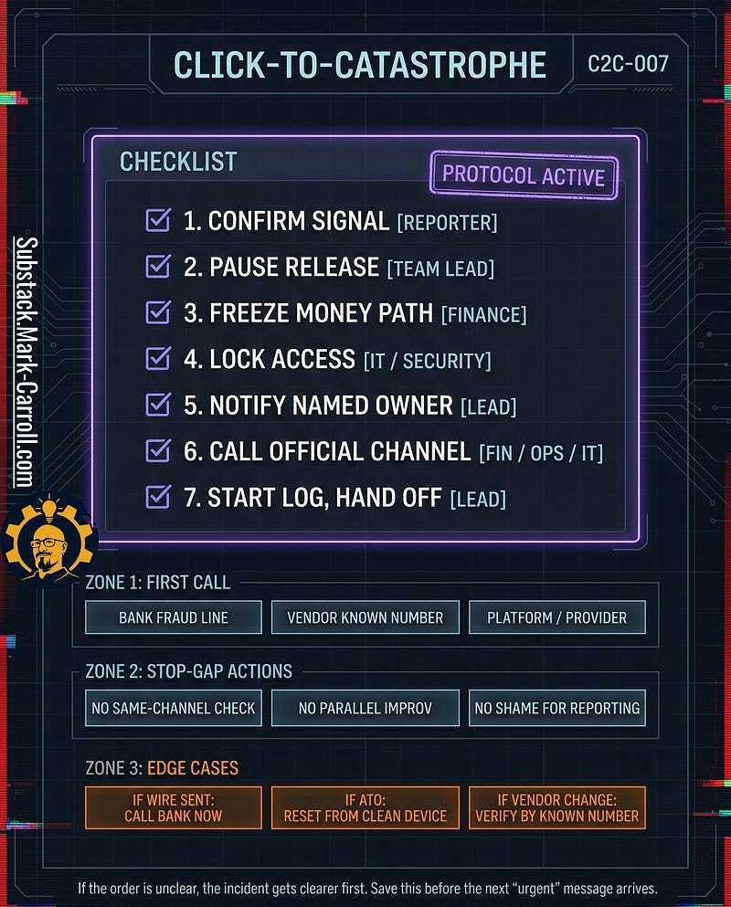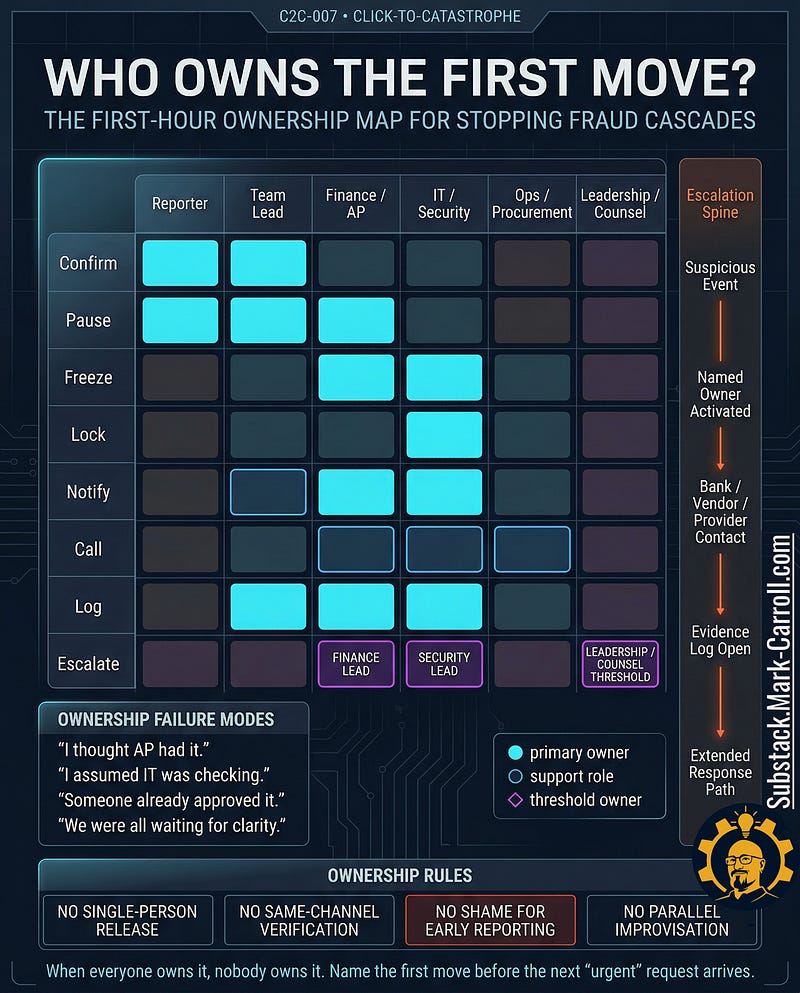 That is where a lot of damage starts. Not because nobody cares. Because too many teams still rely on vague ownership, same-channel verification, and parallel improvisation.