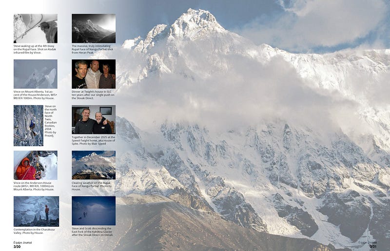 I’ve been working on a new edition of the Équipe Journal (for paying subscribers) to release with the Steve House podcast. I wasn’t planning on it but Steve sent a whole load of images from K7, Nanga Parbat, and Mount Alberta among others so I decided to make an illustrated version of the essay I wrote about him and our relationship. I don’t want to give too much away … here’s a tease and some hints. The first three Équipe Journals are available to paying subscribers in the archive feed, or for purchase on my website.