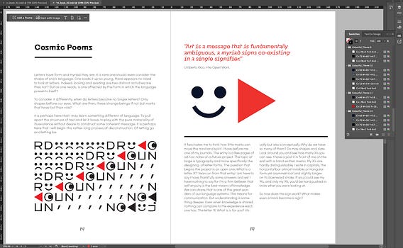 Early test layouts for my book Hyper & Cosmic. It will be coming up to a year now since its publication.
