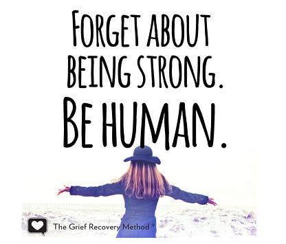 Be Strong - Denial is not a healing grief strategy. Pretending we are not in excruciating pain only delays healing and while it is ignored, the emotional pain is becoming a ticking time bomb for your health. How about be human instead.
