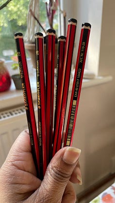 Writing is my voice and I just love writing with a 2B pencil. My thoughts seem to flow naturally from pencil to paper, the soft lead making it easier and faster to write. Sometimes there’s a tumble of thoughts, adjectives, verbs, nouns all mixed up, my handwriting almost unrecognisable.