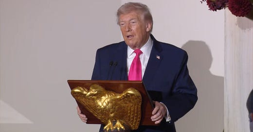 Donald Trump’s Christmas speech contained the usual slurry of tariffs, triumphal arches, and imaginary economic miracles, but then it veered into something stranger. Much stranger. In the middle of the ramble he unveiled a dramatic, hyper-detailed tale about a White House doctor, the Obama daughters, a Peruvian viper, three sets of last rites, a miraculous two-year recovery, and a book that supposedly sold 100,000 copies after a single Truth Social post.