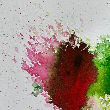 If I had lots of space, I’d have a table full of these going at once - watercolor inks just dropped into/sprayed with water. Different color combinations moving and flowing together… My absolute favorite part is the splatter!!! And seeing how it turns out when completely dry - it’s always a surprise!🌻