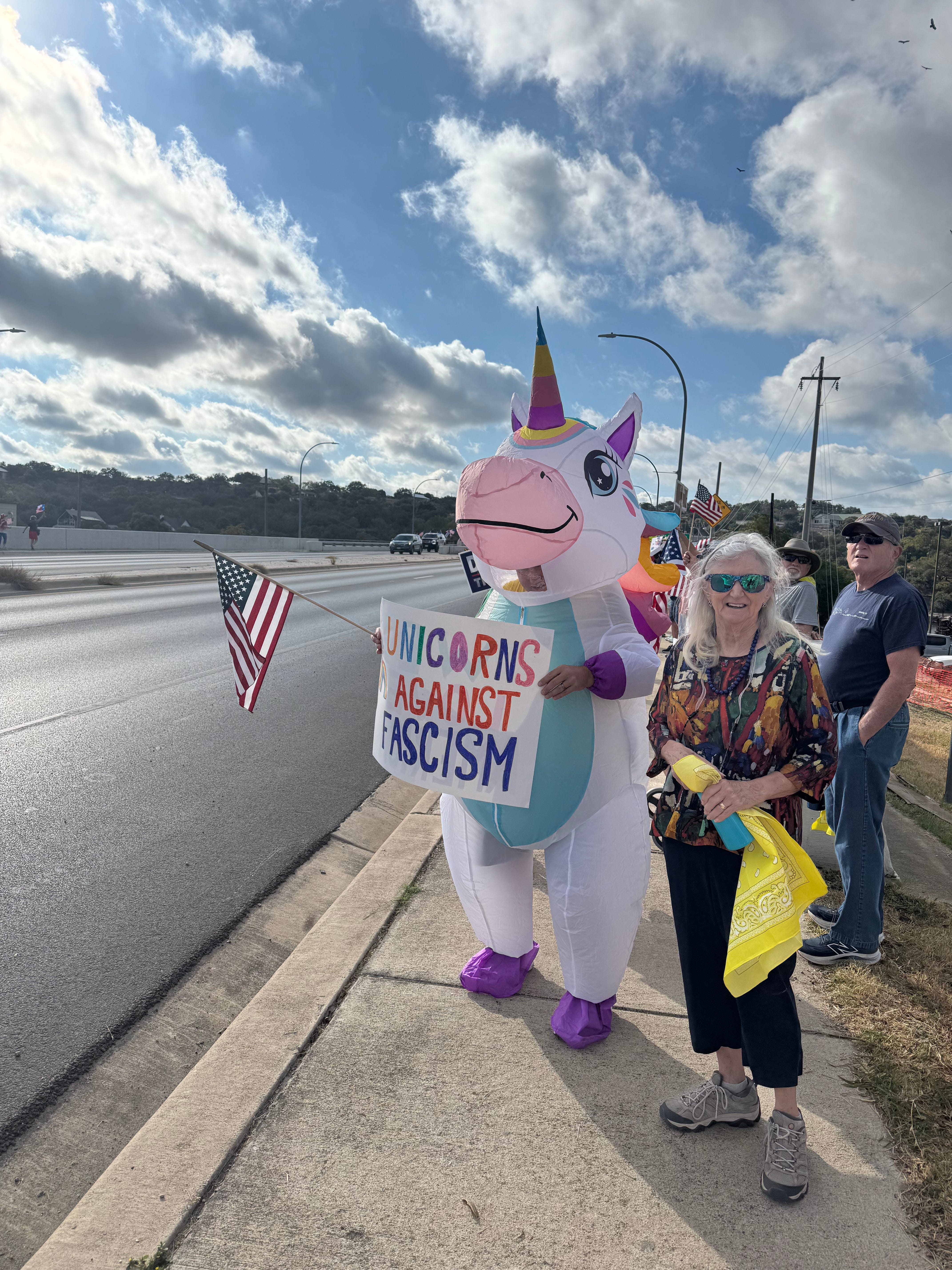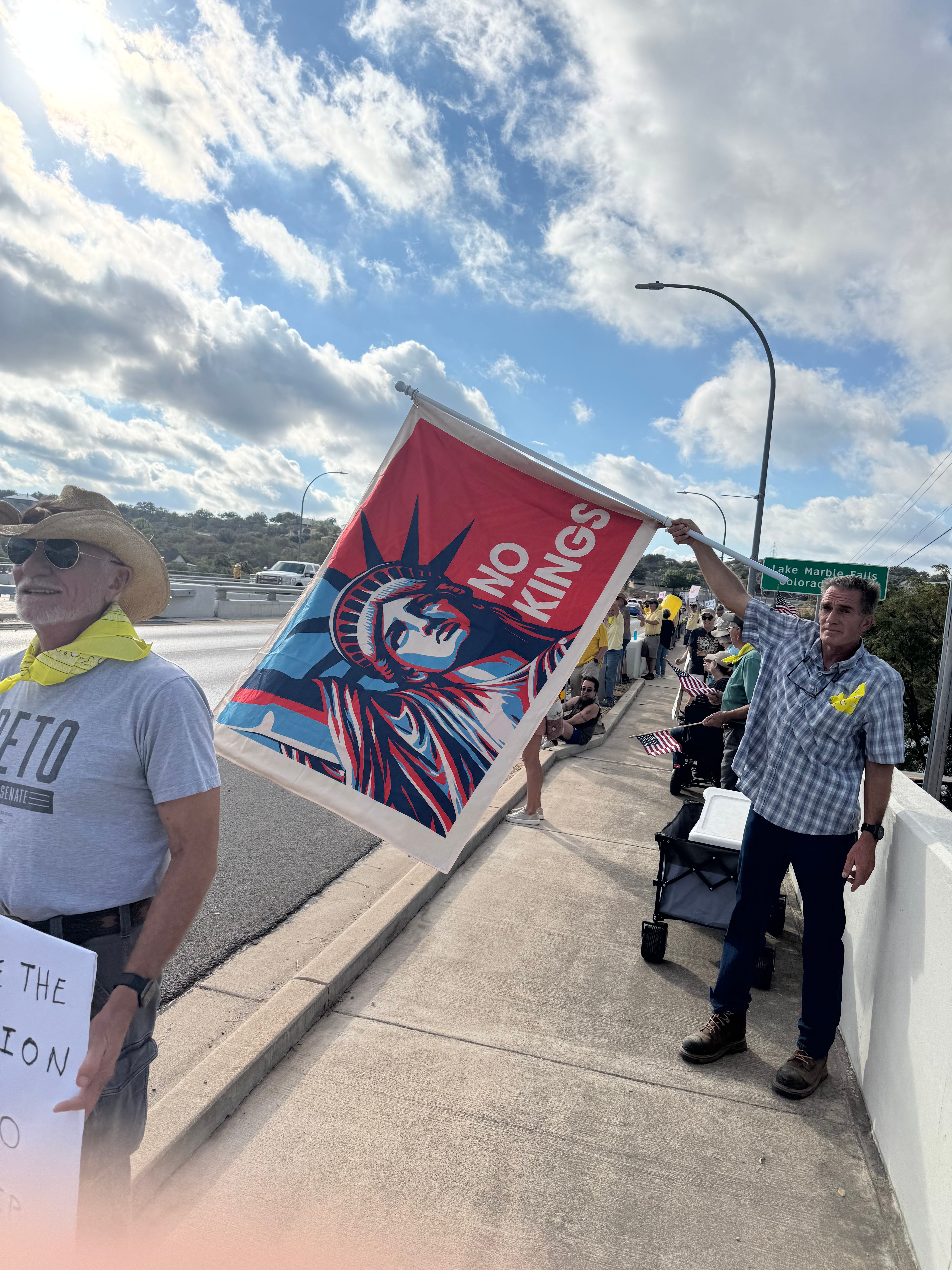Went to No Kings gathering in Marble Falls, TX, a county which voted 80% for Trump, and more than 500 folks gathered on bridge over Lake. Wow. So Amazing.