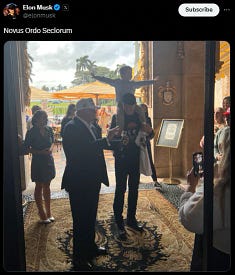 In case you’re not up on your Latin from this Elon trophy shot, “Novus Ordo Seclorum” does not mean “I am a giant ass-kisser who just bought the President.” It means “New Order Of The Ages.” But good God, Elon sure is high on MAGA fumes. It was a lot less embarrassing when he just stuck to ketamine.