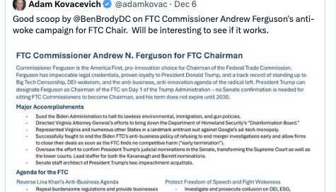 The monopoly round-up for the week is out. Trump put a real enforcer in at the Antitrust Division, said big tech 'has run wild for years,' and attacked pharma middlemen. It's not George W. Bush's antitrust approach anymore.