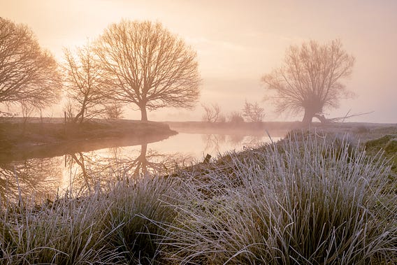 Down by the river Stour in Constable country last Sunday. Surrounded by the mist, fog and a frost underfoot. A magical morning wandering and capturing the changing of light at sunrise. Nothing better than watching the world wake up.