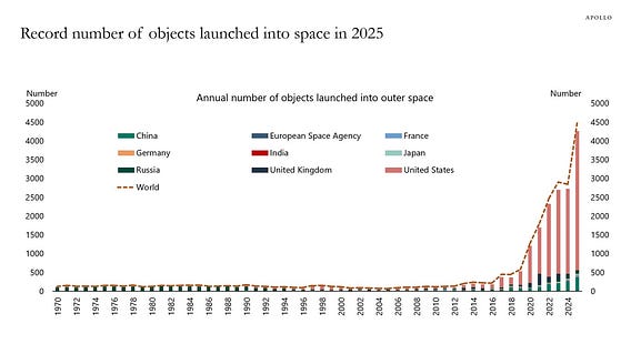 more than 4,500 objects were launched into space in 2025, up from 600 in 2019 = exponential!