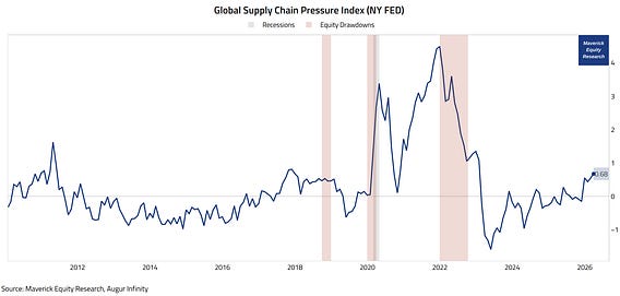 Global Supply Chain Pressure Index (NY FED) with U.S. Recessions and Equity Drawdowns: