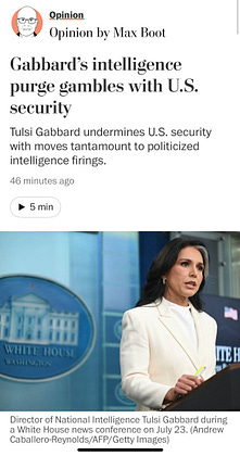 Particularly concerning are the firings of senior intelligence professionals for what appears to be the sin of telling President Donald Trump what he doesn’t want to hear. This has now happened on three occasions, concerning Russia, Iran and Venezuela. wapo.st/4mHZMvB