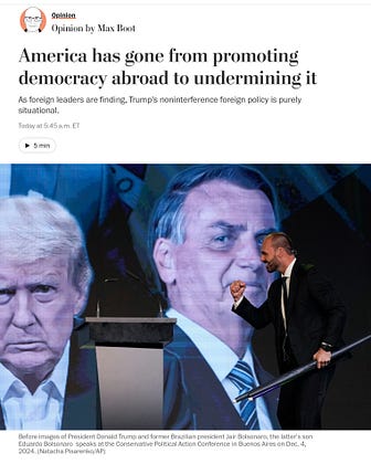 Trump demanded that Israeli prosecutors drop their corruption case against Netanyahu. “It is INSANITY doing what the out-of-control prosecutors are doing to Bibi Netanyahu,” he complained. So much for not lecturing other nations “on how to live and how to govern your own affairs”! wapo.st/4nahJCH