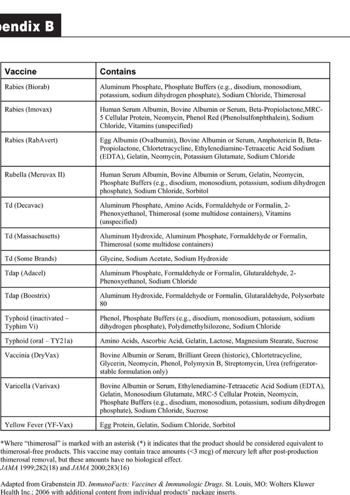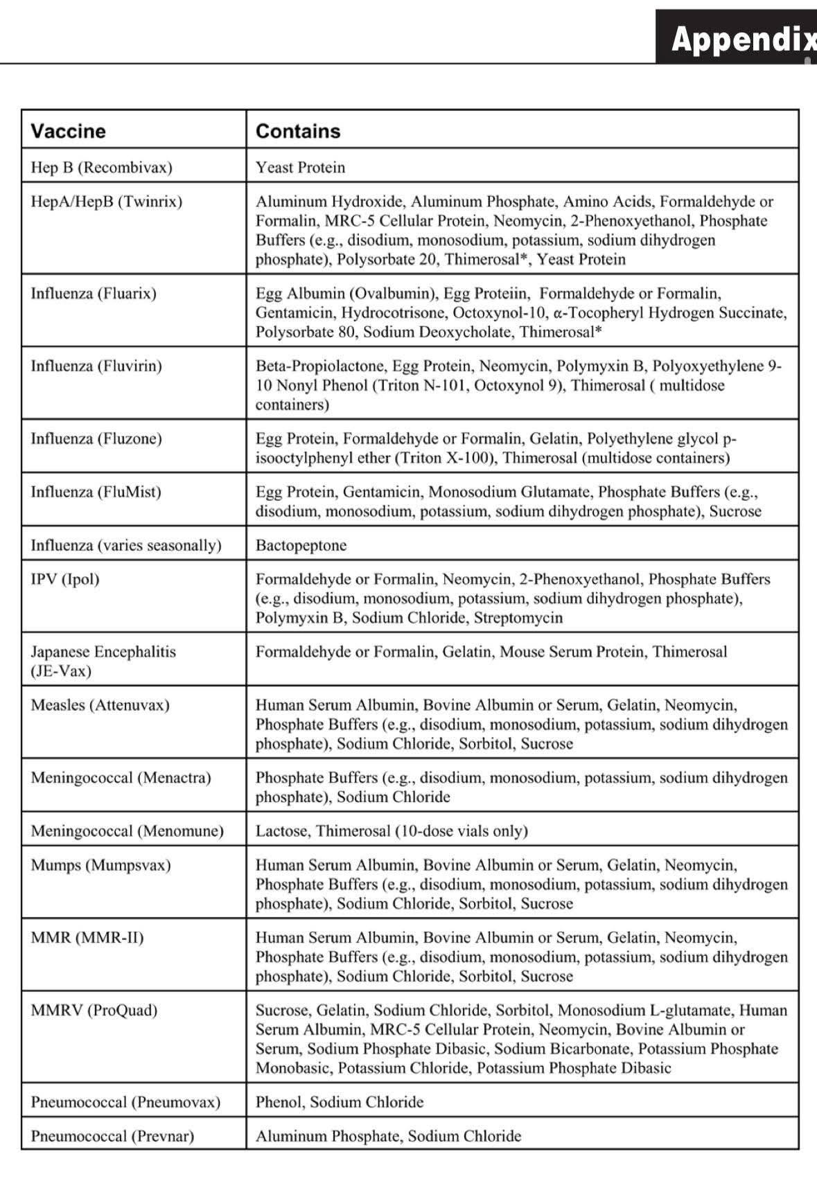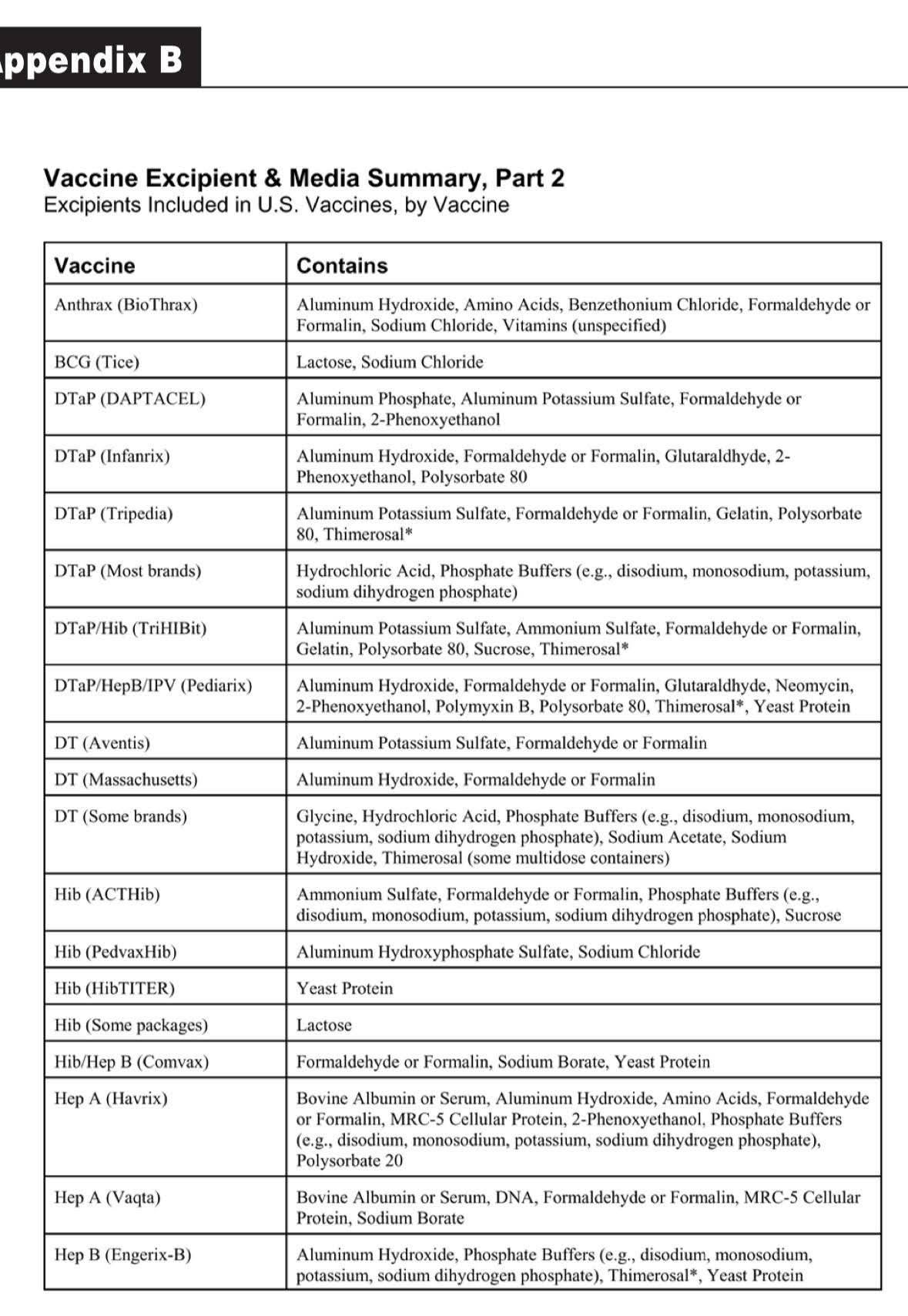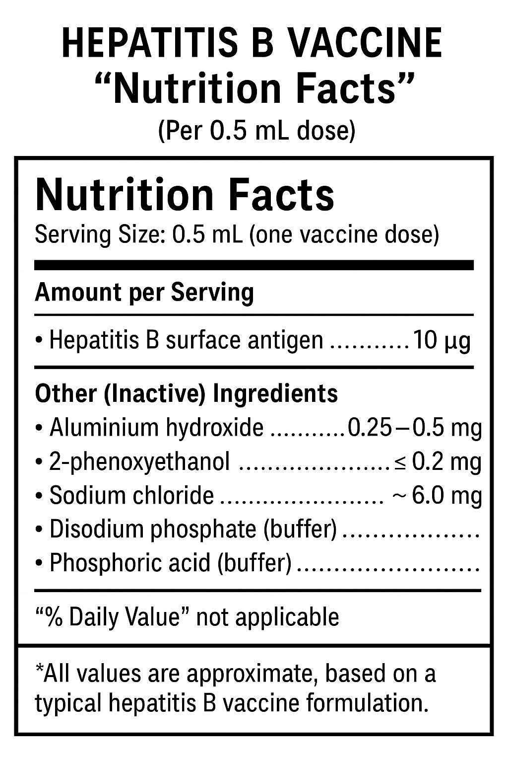 Hepatitis B vaccine plus the “nutrition facts” of other types of vaccines.