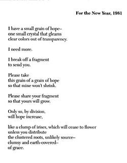 “Please take / this grain of a grain of hope / so that mine won’t shrink.”