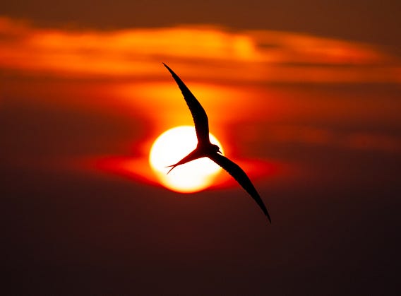 Arctic tern silhouette take on The Skerries off Anglesey, Wales