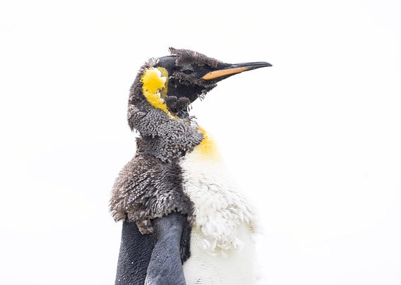 King penguin mid moult at Volunteer Point in the Falkland Islands