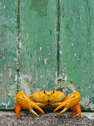 Ascension Island land crab outside an outbuilding of Garden Cottage in Green Mountain National Park