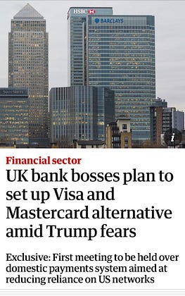 This is the UK. Europe has also launched a payment network to replace PayPal, Visa and Mastercard.