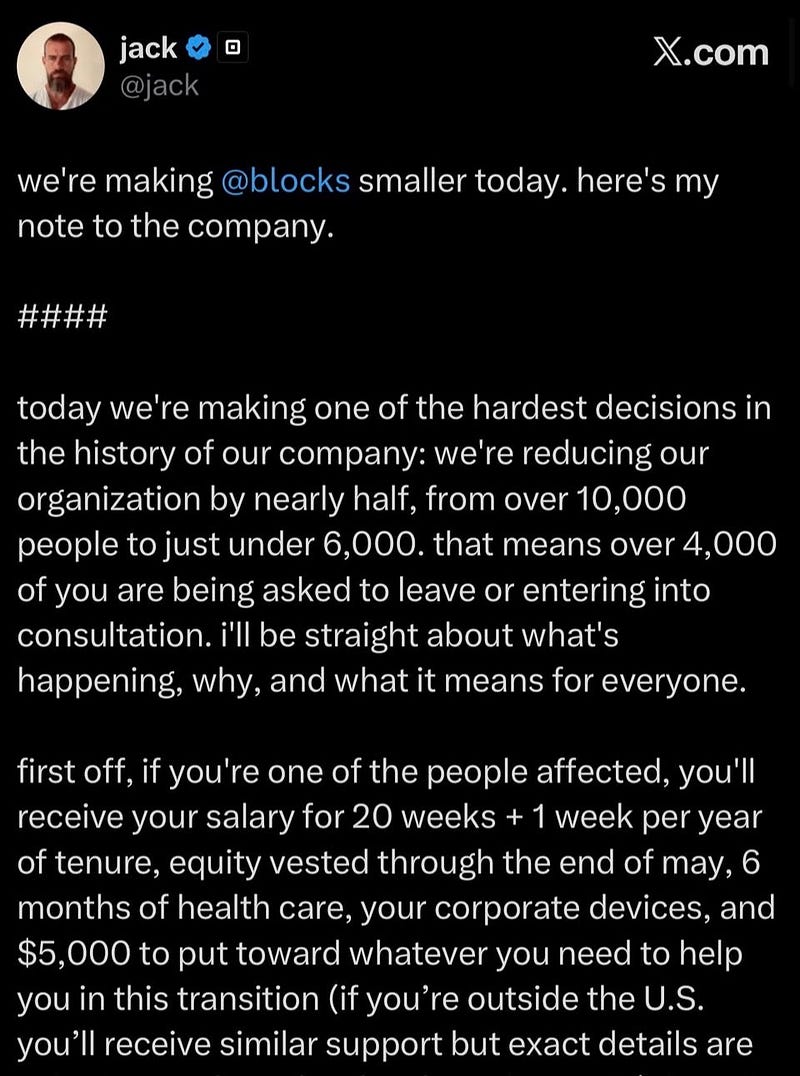And so it begins. This is not a fucking drill. Block Inc (ex Square) is laying off half its workforce while it is in profit.
