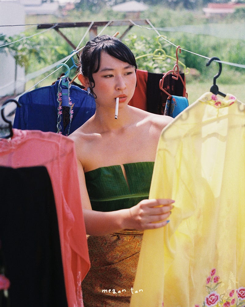 All jokes aside, I’ve been hiding something from you. This May, I attempted to submit my photos for the photoVogue South East Asia and East Asia Challenge. Despite high hopes, we didn’t get selected and I wanted to take this as a time to reflect on being a creator, artist and self employed. You don’t always achieve what you want and you don’t always get selected by the brands, or people you want to. I take this as a learning curve to improve and a good experience to try out shooting portraits on 35mm film.This series of photos was an attempt to show the contrast between my heritage and my upbringing. Growing up in the big city of Kuala Lumpur, Malaysia, I was brought up in a very modern setting. However, I think Malaysia is such a beautiful mix of culture, colors and flavor and wanted to integrate this into my work.