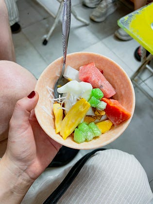 Warm matcha rice, coconut milk soft serve + all the fruits = perfect 10pm cool down snack