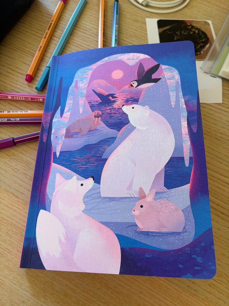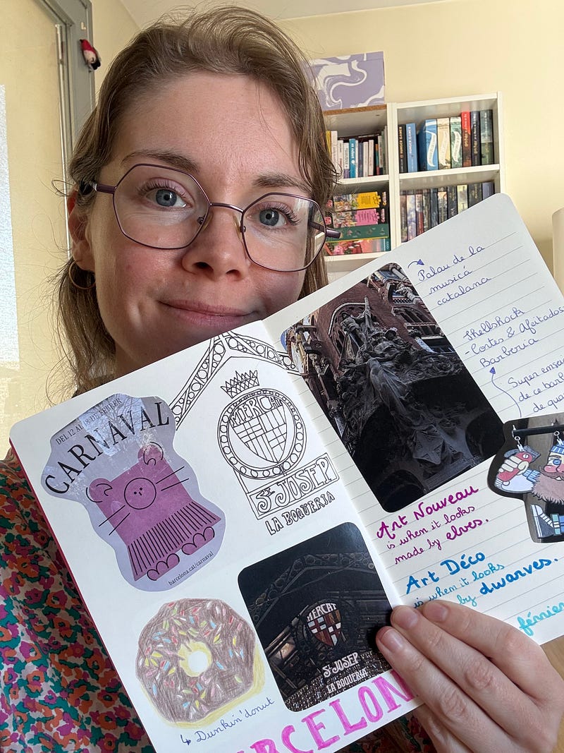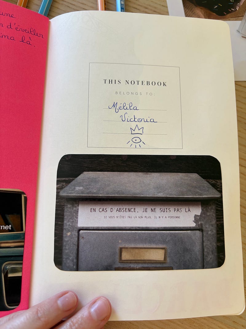 Aujourd’hui, j’ai inauguré officiellement mon carnet d’inspiration, sous le conseil de Sandra Robert qui m’avait parlé des junk notebook (c’est bien ça ?). J’ai choisi d’y coller tout ce qui m’inspire dans ce que je vois, des anecdotes, tout ce qui peut sembler “anodin”. Autant vous dire que cela va me libérer pas mal d’espace sur mes portable et ordinateur !