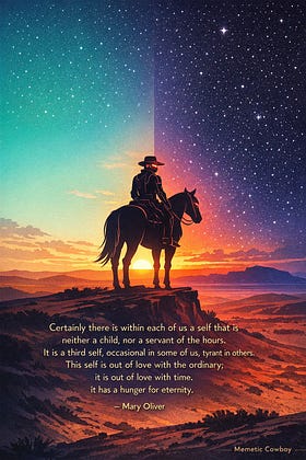 When I finally met Mary Oliver’s phrase — a third self, out of love with time — it didn’t feel like a new idea so much as a quiet recognition. A name landing on a posture I’d already been holding.