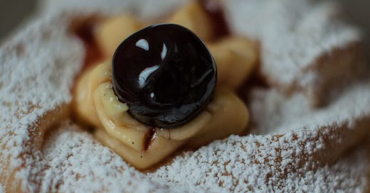 Zeppole di San Giuseppe, Choux Pastries with Crema Pasticcera and Amarena Wild Cherries